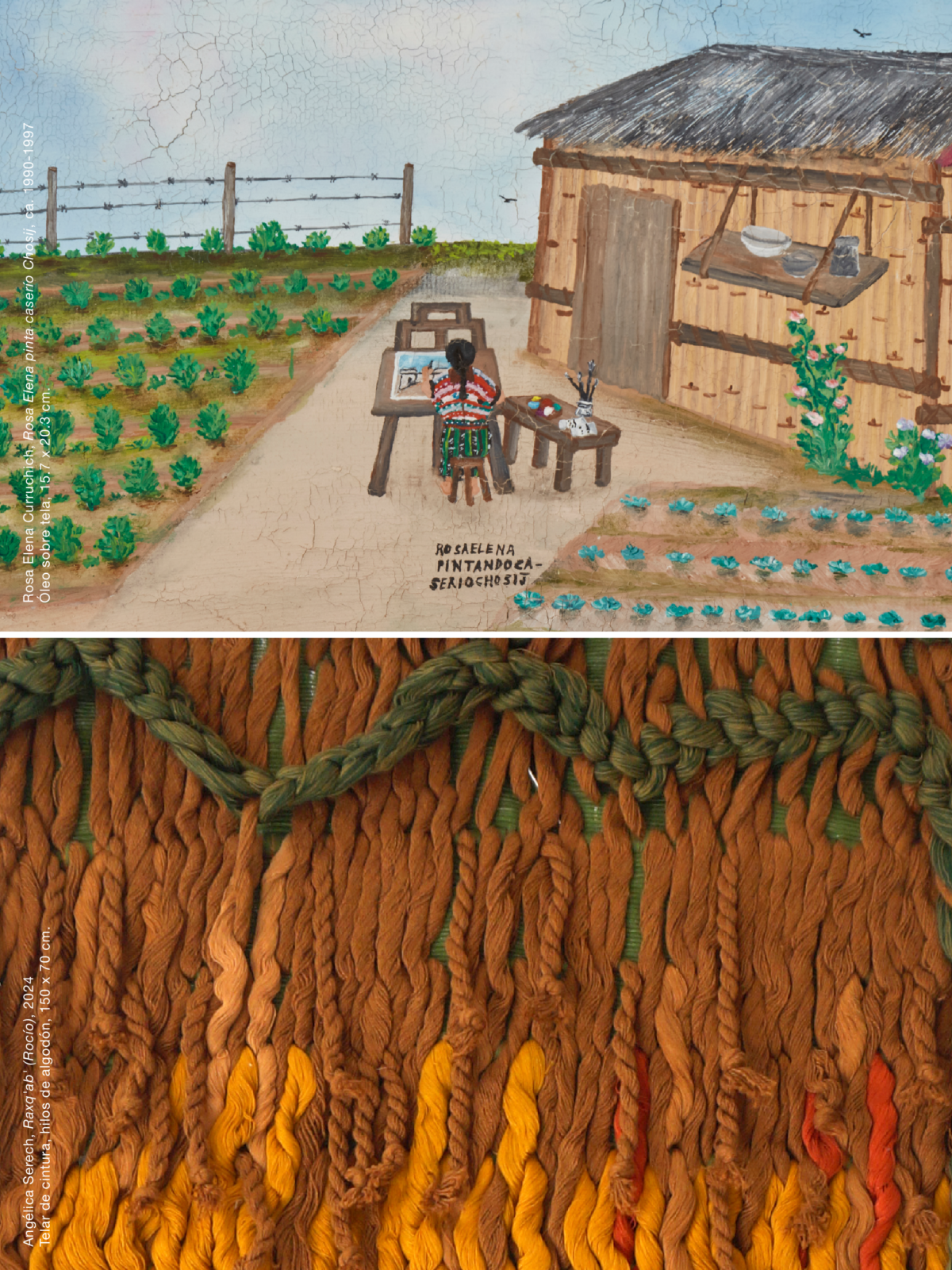 The exhibition highlights the dialogue between the works of Rosa Elena Curruchich (San Juan Comalapa, 1958 – 2005) and Angélica Serech (San Juan Comalapa, 1982). Both Guatemalan artists of Kaqchikel Maya heritage are characterized by forging their own paths while expanding artistic traditions and languages. Their creations reflect the narratives of their community and the struggles of women who pave the way for future generations.